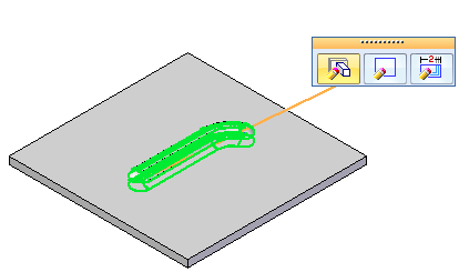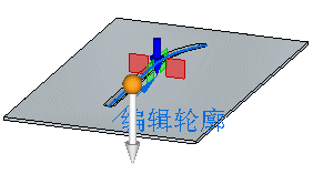将显示命令条、特征原点、加强筋方向箭头以及特征轮廓编辑手柄。