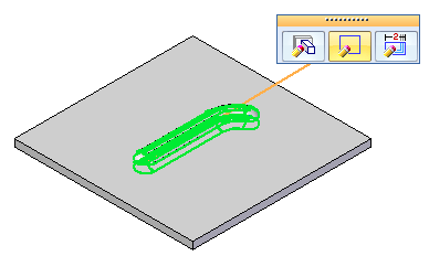 将显示命令条、加强筋方向箭头以及特征轮廓编辑手柄。
