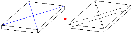 针对折弯成形交叉线显示的数据是在钣金体上存储为属性的矢量。折弯成形交叉线几何图形只用于显示。因为没有要转换的几何图形,所以 3D 转换器不支持折弯成形交叉线特征。