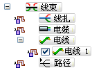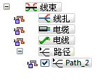 如果重新使用关联电线或电缆的路径创建线扎,则线扎自动在一个线扎中包括所有电线和电缆。
