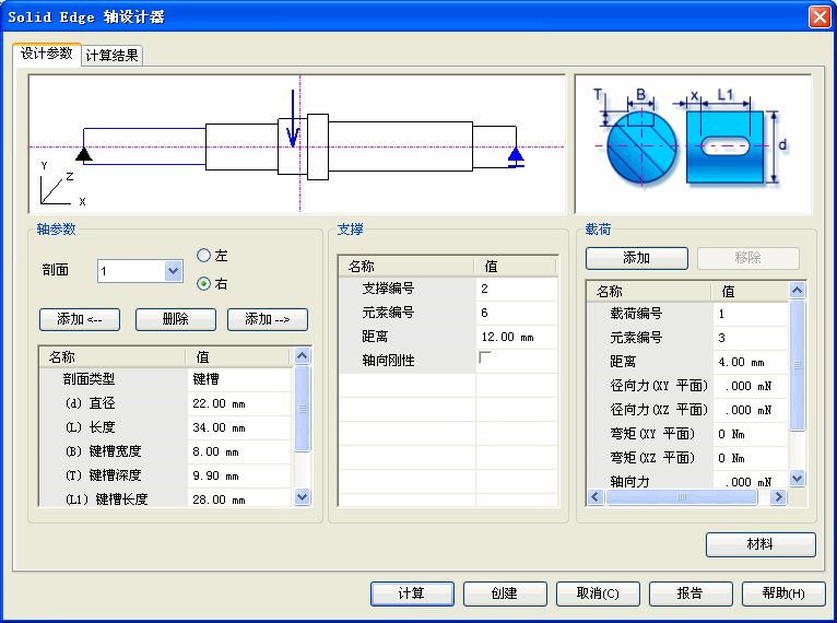 使用材料按钮可选择轴的材料。