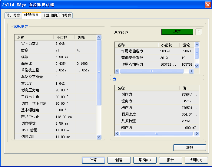 直齿轮计算结果选项卡