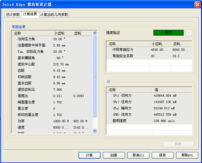 锥齿轮计算结果选项卡