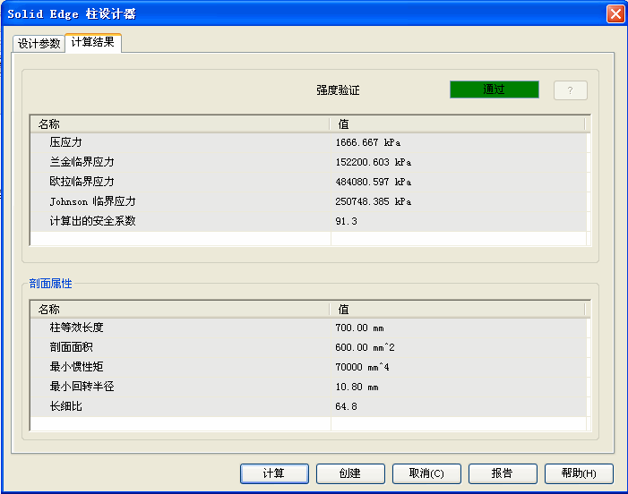 圆柱体计算结果选项卡