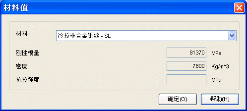 此时材料窗口中的刚性模量、密度和抗拉强度的输入字段和设计参数选项卡中弹簧尺寸的簧丝直径将变为启用状态,您可输入自己的值。