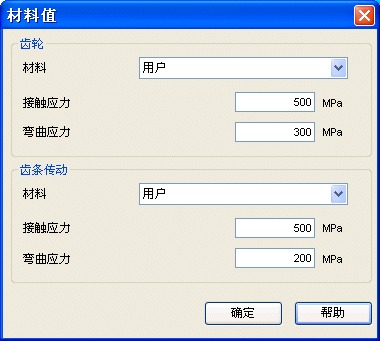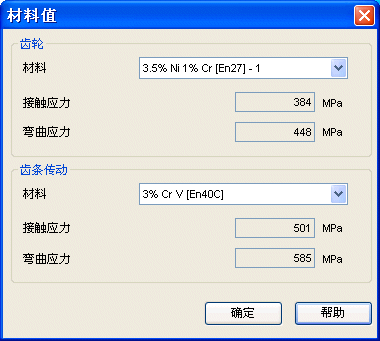 工程参考中指定的齿轮材料仅起指导性作用,只用于常规计算目的。