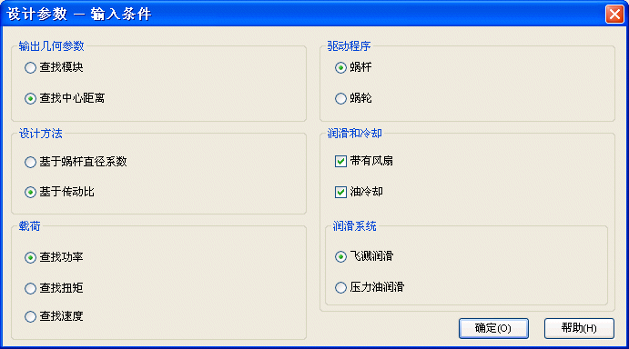 在输出几何参数中选择查找中心距离,然后在设计方法中选择基于蜗杆直径系数。